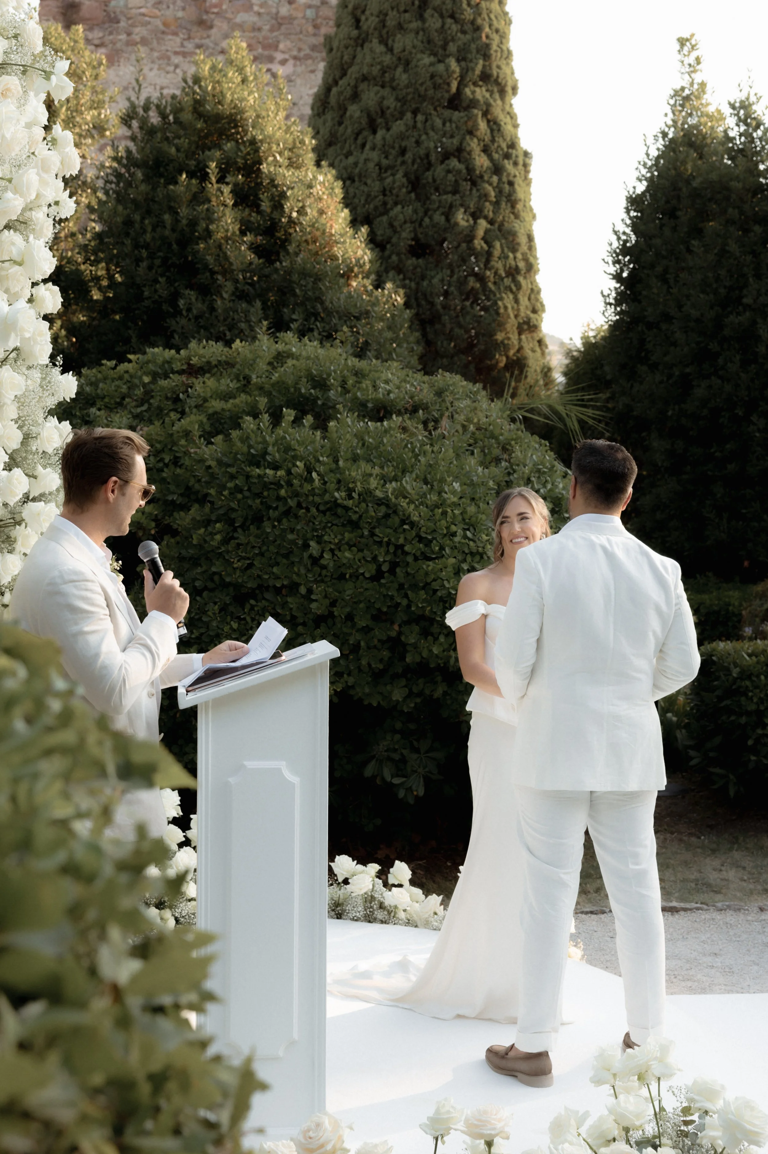 Personally, I was obsessed with the decor. It was pure, understated elegance, white roses everywhere, abundant but arranged with perfect precision, giving a fresh, timeless feel. Nothing felt forced or overdone, everything was clean and minimal, allowing the natural beauty of the venue to shine.